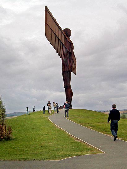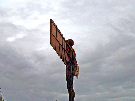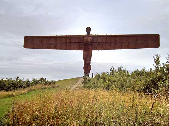 Dit enorme beeld van een mensfiguur met uitgestrekte vleugels is al uit de verte zichtbaar. Angel of