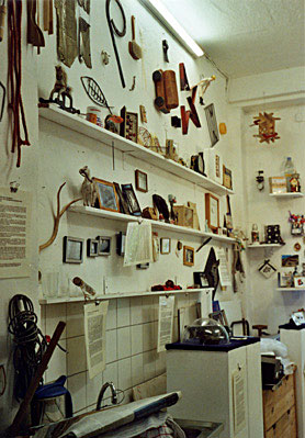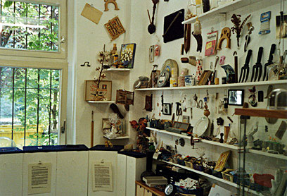 wilde ideeën uit werken en stelt die ten toon in zijn piepkleine museum en openbaart ze op de