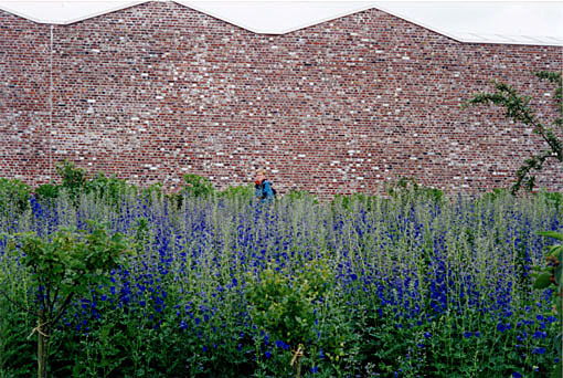 terrein. In een zee van menshoge ridderspoor stond een nieuw expositiegebouw van Heerig. En bij
