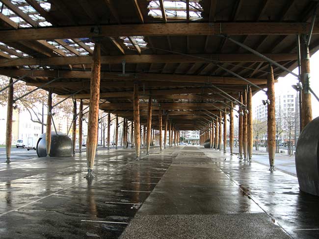 Achter de buurt Etats-Unis bevindt zich een mooie moderne markthal.