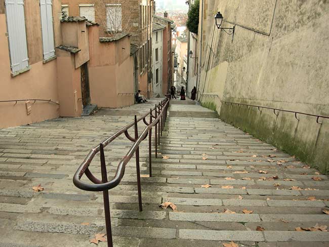 Daarentegen is Croix Rousse een hoog gelegen wijk waar zich tot nog in de 20e eeuw de hele