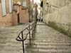 paden met trappen tussen tuinen en huizen door. Sommige volgen de rondingen van de heuvel en andere