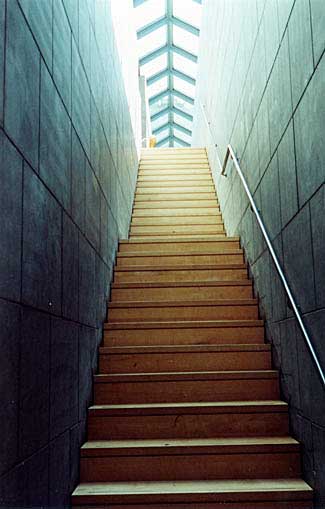 In het trappenhuis hangen veel grote textielen uit de periode 1950-1970, die je nog maar zelden