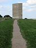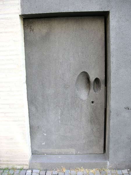 De ruimte roept werkelijk de behoefte op om in zich zelf te keren. Over de open top snellen wolken voorbij. De lichtgaten in de wand, overblijfselen van de bewapening, zijn gedicht met geblazen glaskogels. De vloer is oneffen als in een grot en wordt nat als het regent. Ga kijken en steek een kaarsje aan.