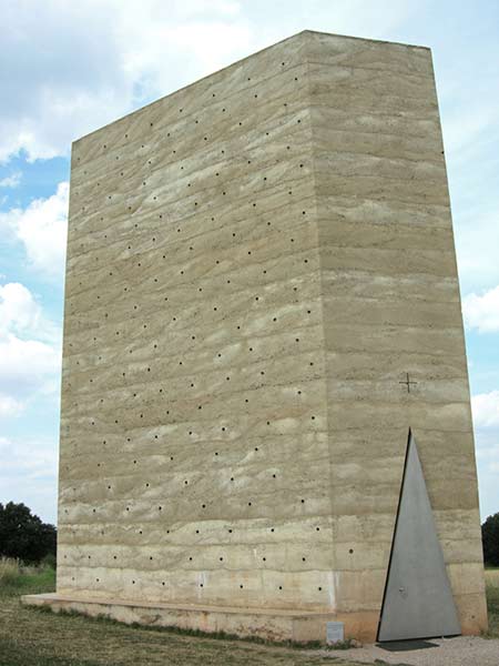 De blanke toren bleek een slanke onregelmatige rechthoek te zijn. Lagen beton in verschillende tinten zijn elkaar gestapeld. De bekisting heeft ronde gaten achtergelaten, de deur is een driehoek die lijkt te kantelen. De ruimte binnen is hoog en nauw en open naar de hemel. Het gebouw is door de plaatselijke bewoners zelf gebouwd en de tijd die het heeft gekost is er aan af te lezen.